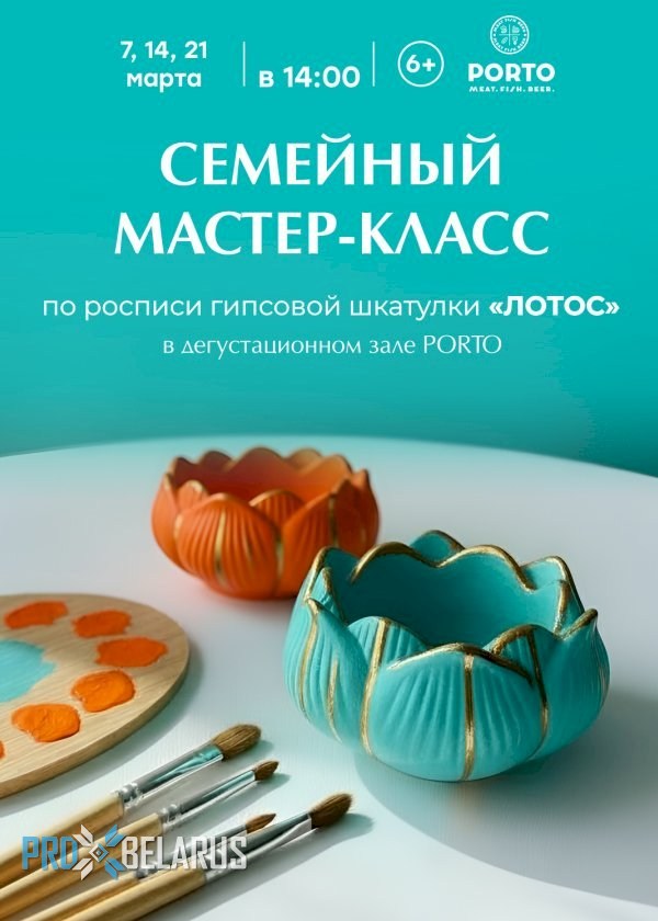 Семейный мастер-класс по росписи гипсовой шкатулки "Лотос", ароматное горячее какао с мягким печеньем — настоящий уютный ритуал, который сделает ваше посещение еще более приятным и запоминающимся.